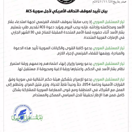 بيان تأييد لموقف التحالف الأمريكي لأجل سورية ACS