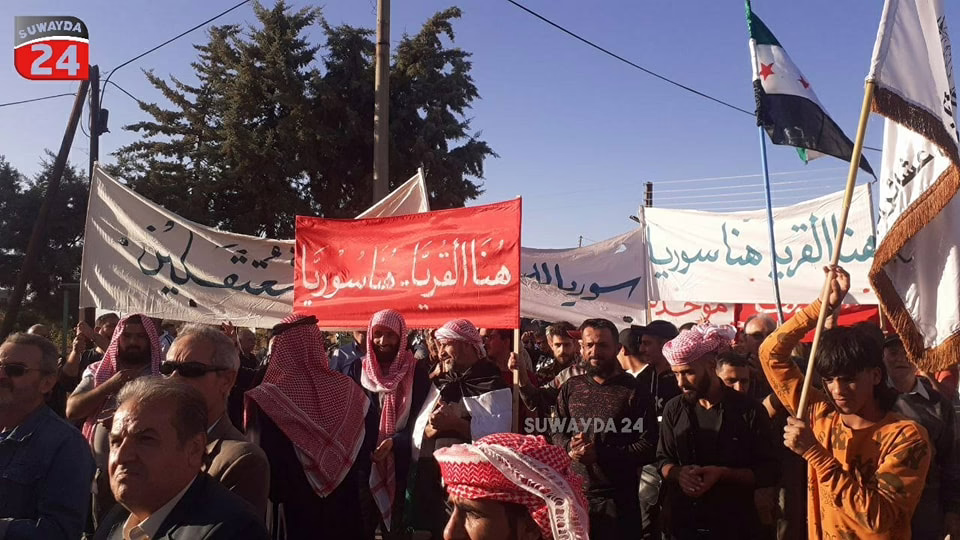 احتجاجات السويداء تتواصل في ساحة الكرامة والمطلب اسقاط النظام السوري.