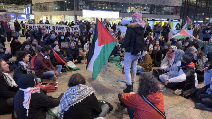هولندا: اعتصام في 13 محطة قطار دعماً لغزة.