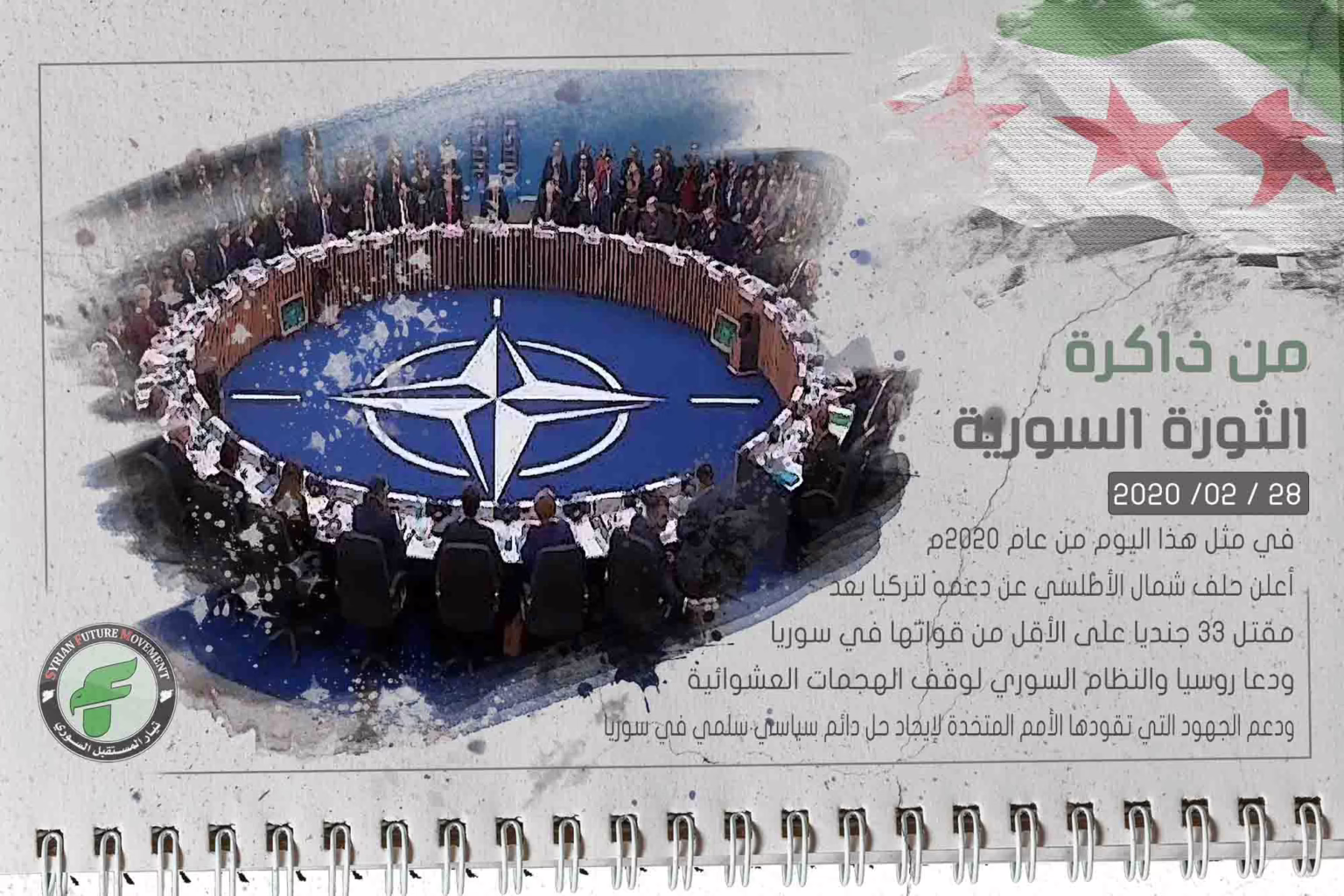 في مثل هذا اليوم من عام 2020م، أعلن حلف شمال الأطلسي عن دعمه لتركيا بعد مقتل 33 جنديا على الأقل من قواتها في سوريا، ودعا روسيا والنظام السوري لوقف الهجمات العشوائية، ودعم الجهود التي تقودها الأمم المتحدة لإيجاد حل دائم سياسي سلمي في سوريا