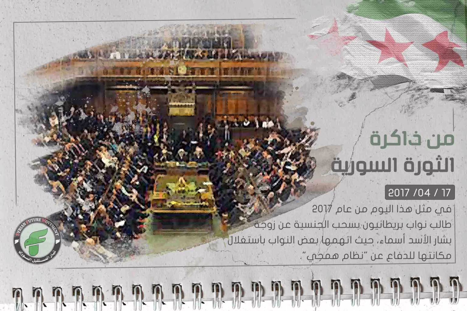 في مثل هذا اليوم من عام 2017، طالب نواب بريطانيون بسحب الجنسية عن زوجة بشار الأسد أسماء، حيث اتهمها بعض النواب باستغلال مكانتها للدفاع عن "نظام همجي".