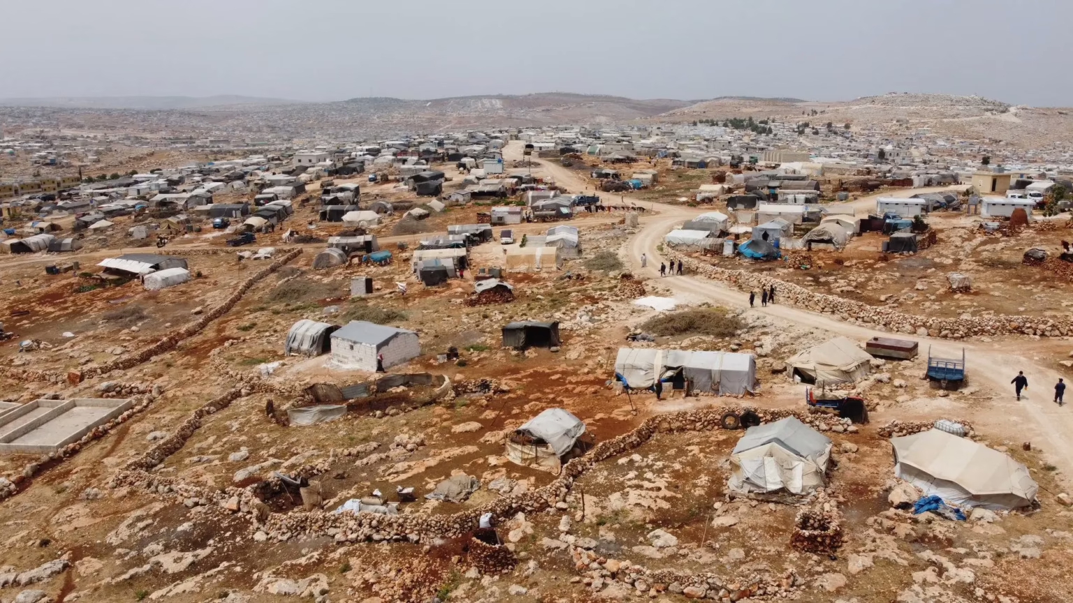 البدء بعملية مد أنابيب مياه الشرب لبيوت اللاجئين والنازحين في مخيم طيبة في مدينة عفرين.