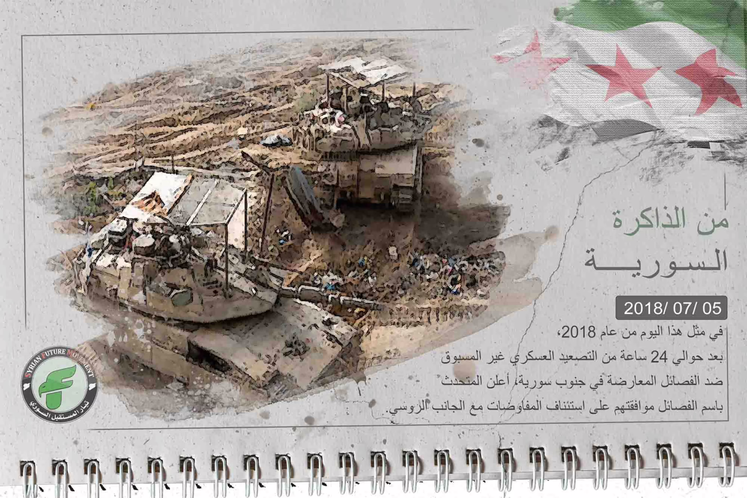 حدث في مثل هذا اليوم من عام 2018: بعد نحو 24 ساعة من التصعيد العسكري غير المسبوق على مواقع الفصائل المعارضة في جنوب سورية، أعلن المتحدث باسم الفصائل في جنوب سورية موافقتها على العودة إلى التفاوض مع الجانب الروسي.
