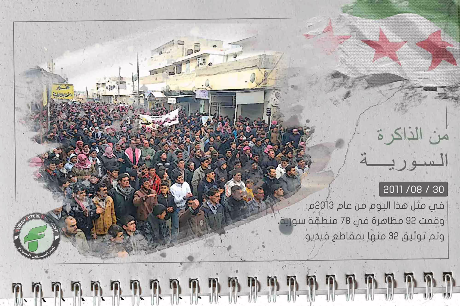 حدث في مثل هذا اليوم من عام 2013م: 92 مظاهرة في 78 منطقة سورية في "جمعة وما النصر إلا من عند الله"، بينها 32 مظاهرة موثقة بمقاطع مصورة.