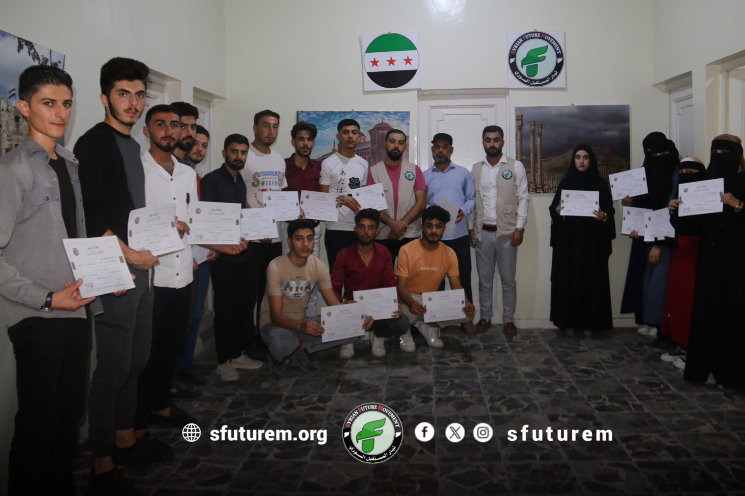 منح تيار المستقبل السوري الشهادات لمن أتمّ حضور التدريب الذي بلغت عدد ساعاته (18) موزعة على( 5 ) أيام في كل يوم ( 3 ) ساعات من الشهر الثامن من عام 2024م بمدينة أعزاز السورية، وفق محاور محددة، قدمها المدرب: يحيى عثمان.