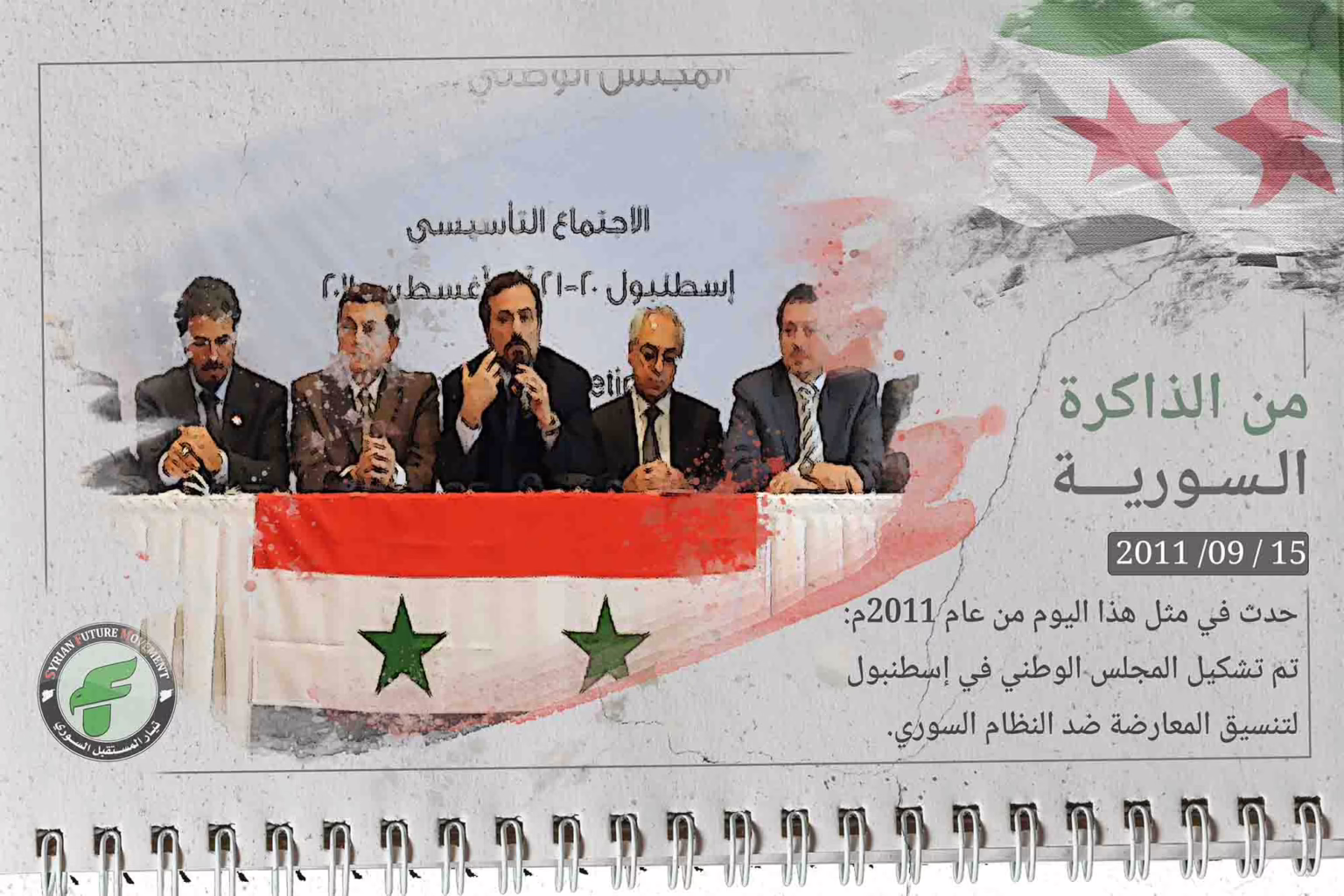 حدث في مثل هذا اليوم عام 2011م: تم الاعلان في إسطنبول التركية عن تشكيل المجلس الوطني الذي يضم 140 عضوًا، والهادف إلى تنسيق تحركات المعارضة ضد النظام السوري.