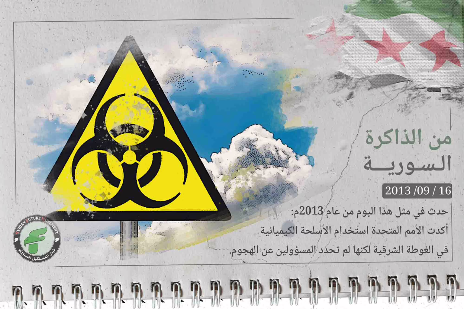حدث في مثل هذا اليوم عام 2013م: فريق التحقيق الأممي يؤكد استعمال السلاح الكيميائي في الغوطة, حيث أطلع الأمين العام للأمم المتحدة بان كي مون مجلس الأمن التابع للأمم المتحدة في جلسة مغلقة على تقرير فريق التحقيق الأممي في سورية بشأن استعمال السلاح الكيميائي, وأكد التقرير استخدام الأسلحة الكيميائية على نطاق واسع ضد المدنيين في الغوطة الشرقية يوم 21 آب/ أغسطس 2013، ولا تشمل ولايته تحديد المسؤولين عن الهجوم.