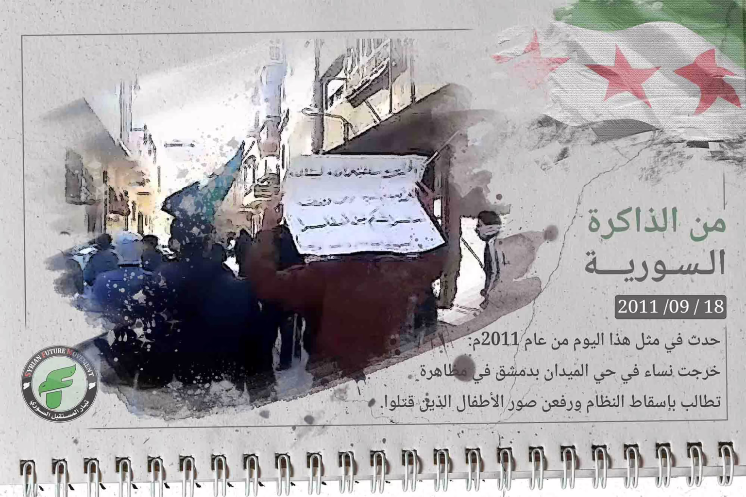 حدث في مثل هذا اليوم من عام 2011م: خرجت مظاهرة نسائية في حي الميدان بمدينة دمشق هتفت لإسقاط النظام وحملت صورًا لأطفال قتلهم