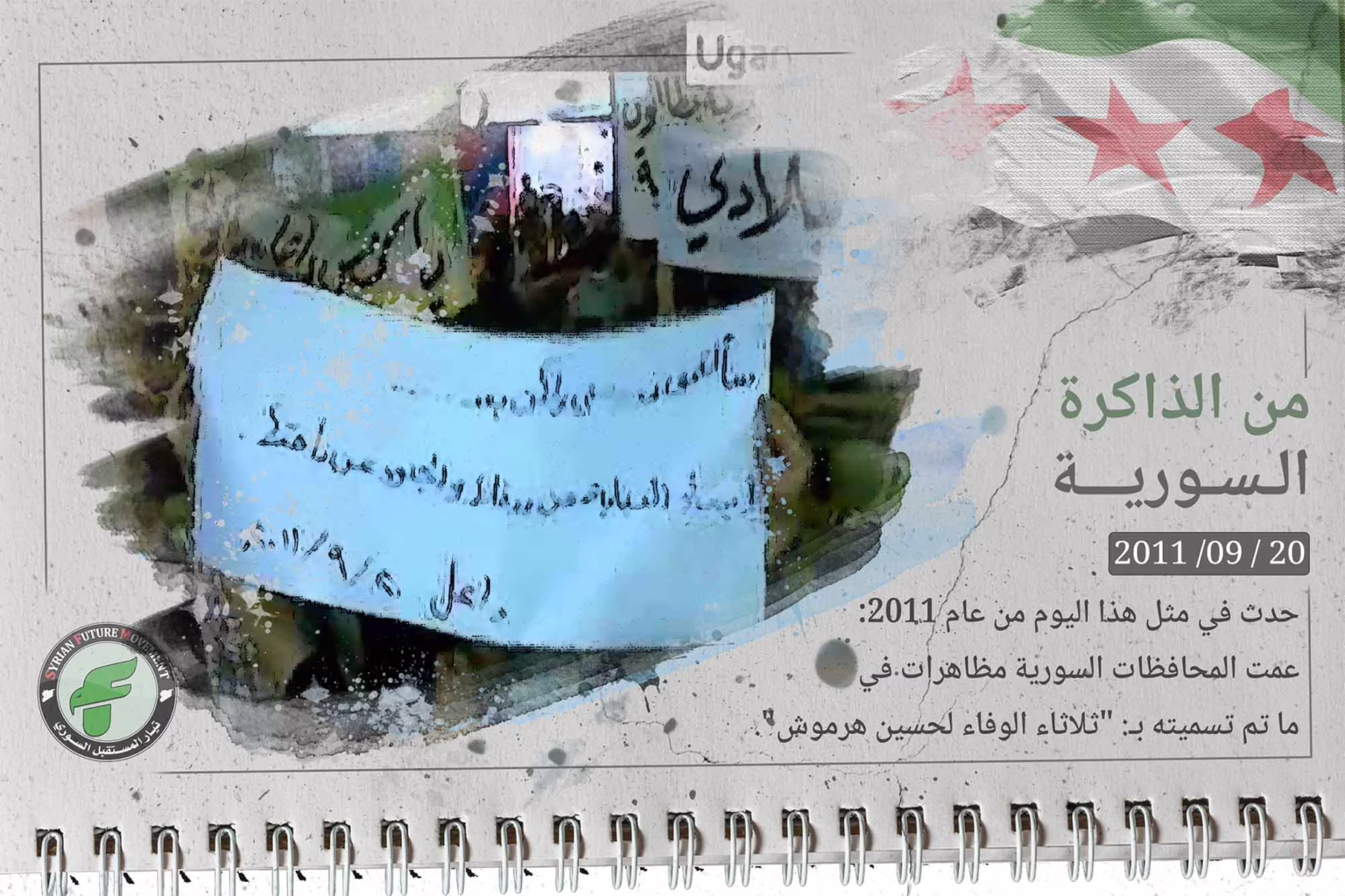 حدث في مثل هذا اليوم من عام 2011: عمت المحافظات السورية مظاهرات في ما تم تسميته بـ: "ثلاثاء الوفاء لحسين هرموش".