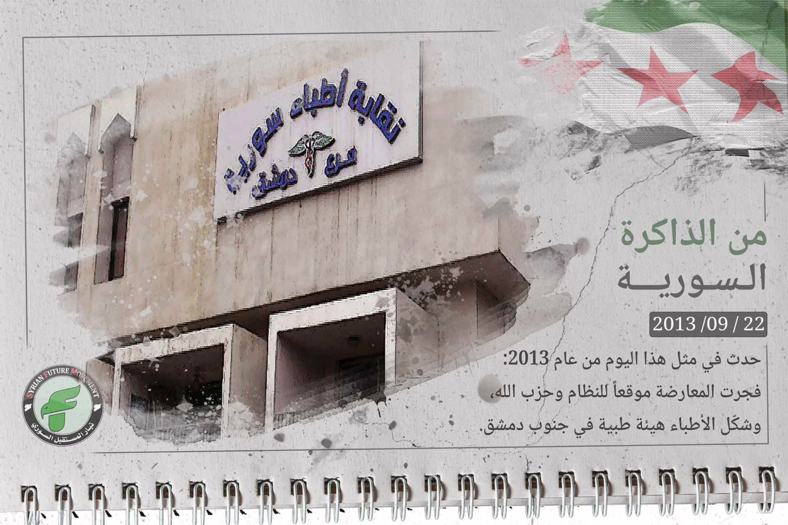 حدث في مثل هذا اليوم من عام 2013م: بالتزامن مع تفجير الفصائل المعارضة مبنى تتمركز به قوات النظام وحزب الله اللبناني على جبهة حي جوبر.. أعلن مجموعة من الأطباء تشكيل "الهيئة الطبية العامة لجنوب العاصمة دمشق" في أحياء جنوب دمشق.