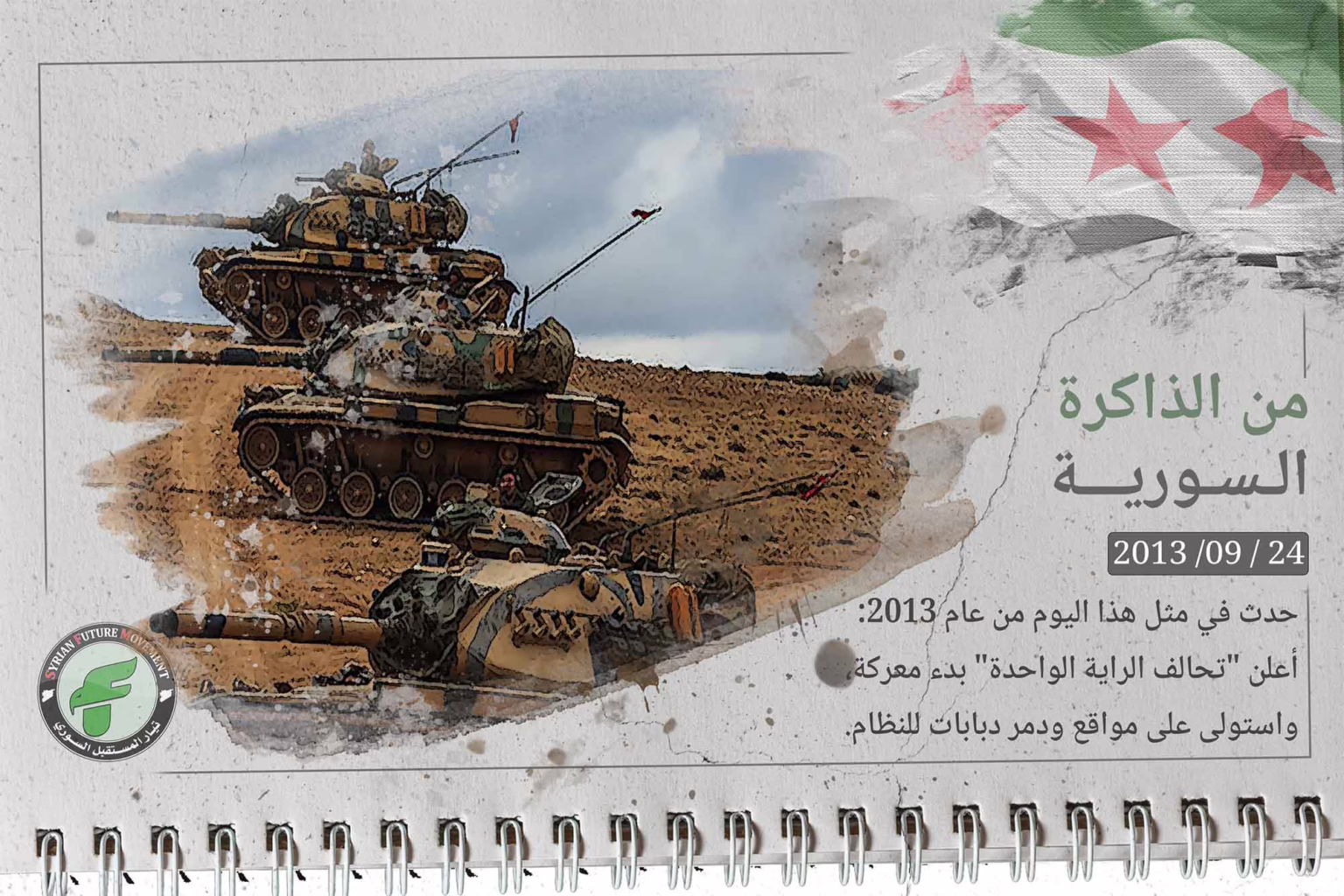 حدث في مثل هذا اليوم من عام 2013م: أعلن "تحالف الراية الواحدة" بدء معركة "وإن عدتم عدنا"، حيث دارت اشتباكات في محيط الفرقة السابعة قرب بلدة خان الشيح، بينما أعلنت "كتائب الفرقان" و"ألوية أحفاد الرسول" اقتحام اللواء 88 وتل بوزة، واستهدفت الفصائل بالهاون اللواء 88، وأعلنت السيطرة على تل ركيس وتل بوزة وإعطاب دبابتين، ومقتل عدد من عناصر النظام، واغتنام عربة (بي أم بي).