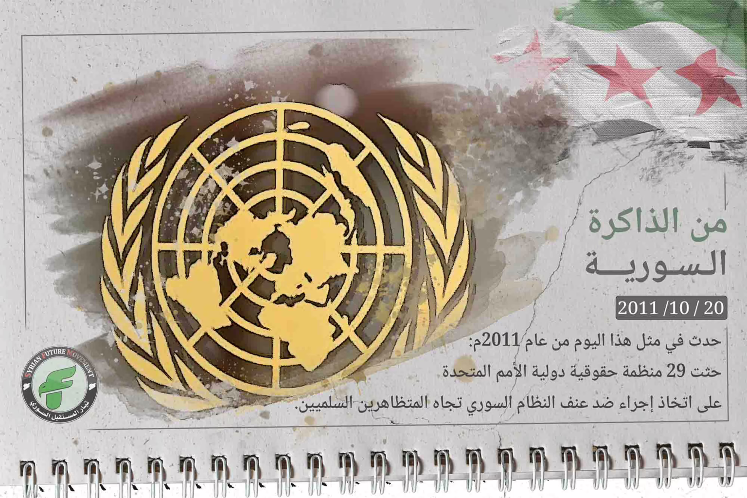 حدث في مثل هذا اليوم من عام 2011م: طالبت 29 منظمة دولية تعمل في مجال الدفاع عن حقوق الإنسان الجمعية العامة للأمم المتحدة باتخاذ إجراءات ضد النظام السوري بسبب ممارسته القتل واستخدام القوة المفرطة ضد المتظاهرين السلميين.