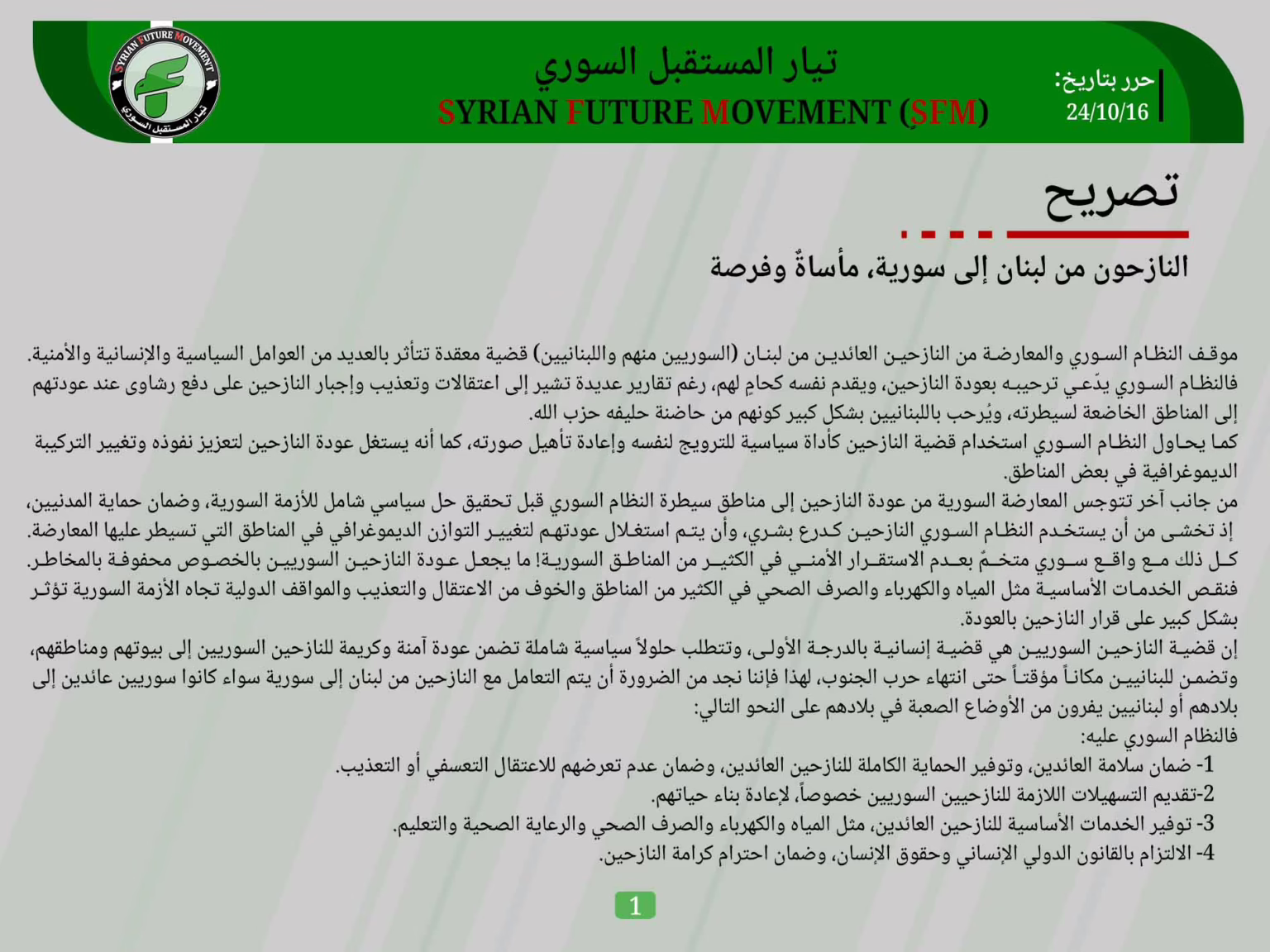 لهذا فإننا ندعو في تيار المستقبل السوري جميع الأطراف المعنية أن تتحمل مسؤولياتها وأن تعمل معًا من أجل تحقيق السلام والاستقرار في سورية، لتكون هذه المحنة منحة، وهذه التحديات فرصة للجميع.