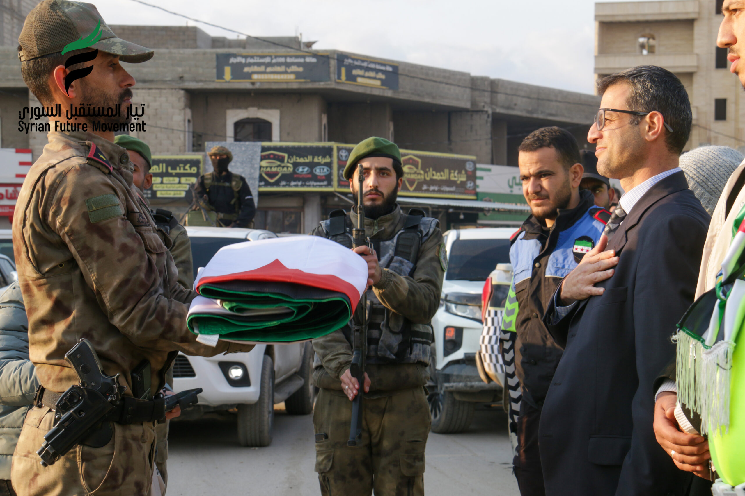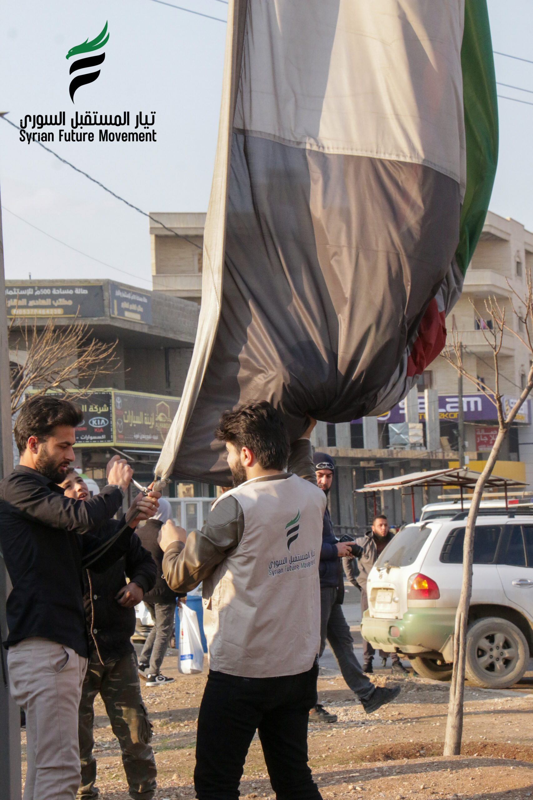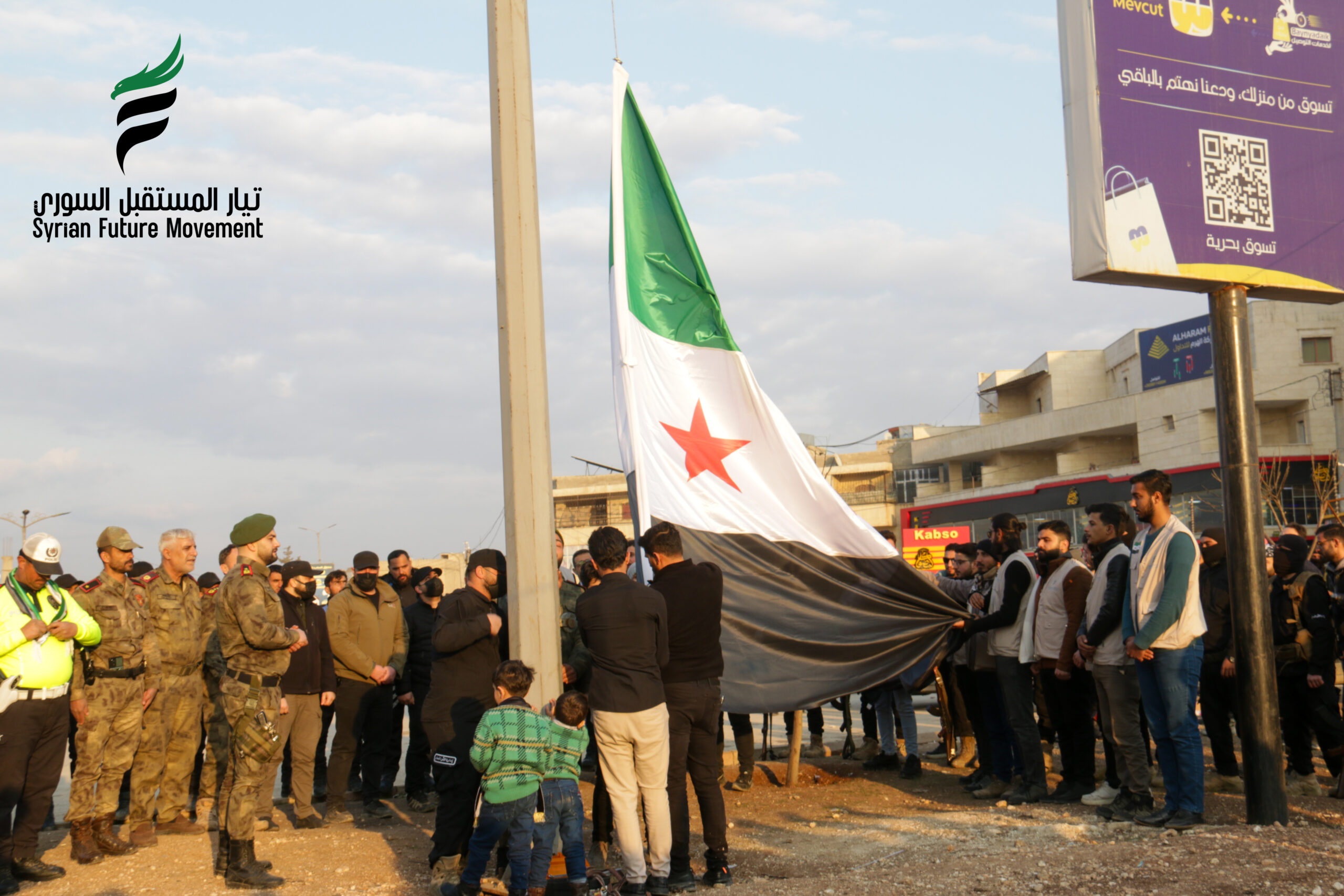 تيار المستقبل السوري وبرعاية منه، قام مع كافة الفعاليات في مدينة اعزاز، بتاريخ السبت 2025/02/07 بفعالية تجديد ورفع العلم بساحة طريق الحرير.