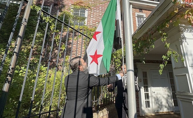 رفع العلم السوري فوق مبنى السفارة في واشنطن