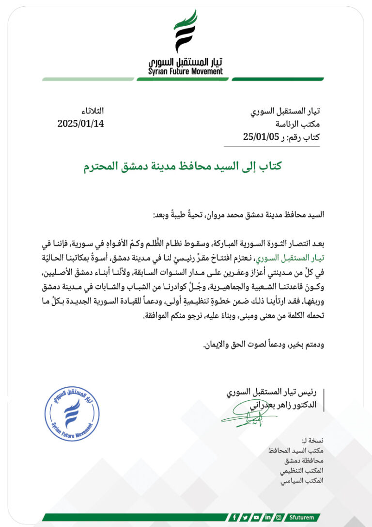 تحت المجهر: تيار المستقبل السوري يؤكد على ضرورة إنشاء هيئة عدالة انتقالية لتحقيق المصالحة الوطنية