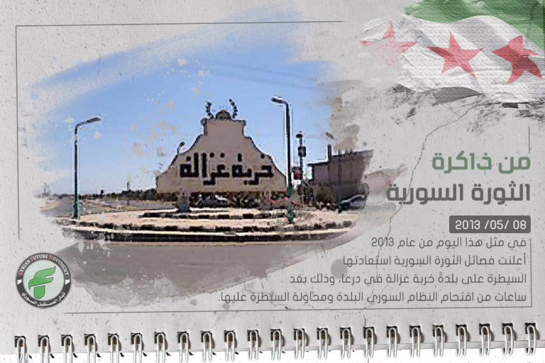 في مثل هذا اليوم من عام 2013، أعلنت فصائل الثورة السورية استعادتها السيطرة على بلدة خربة غزالة في درعا، وذلك