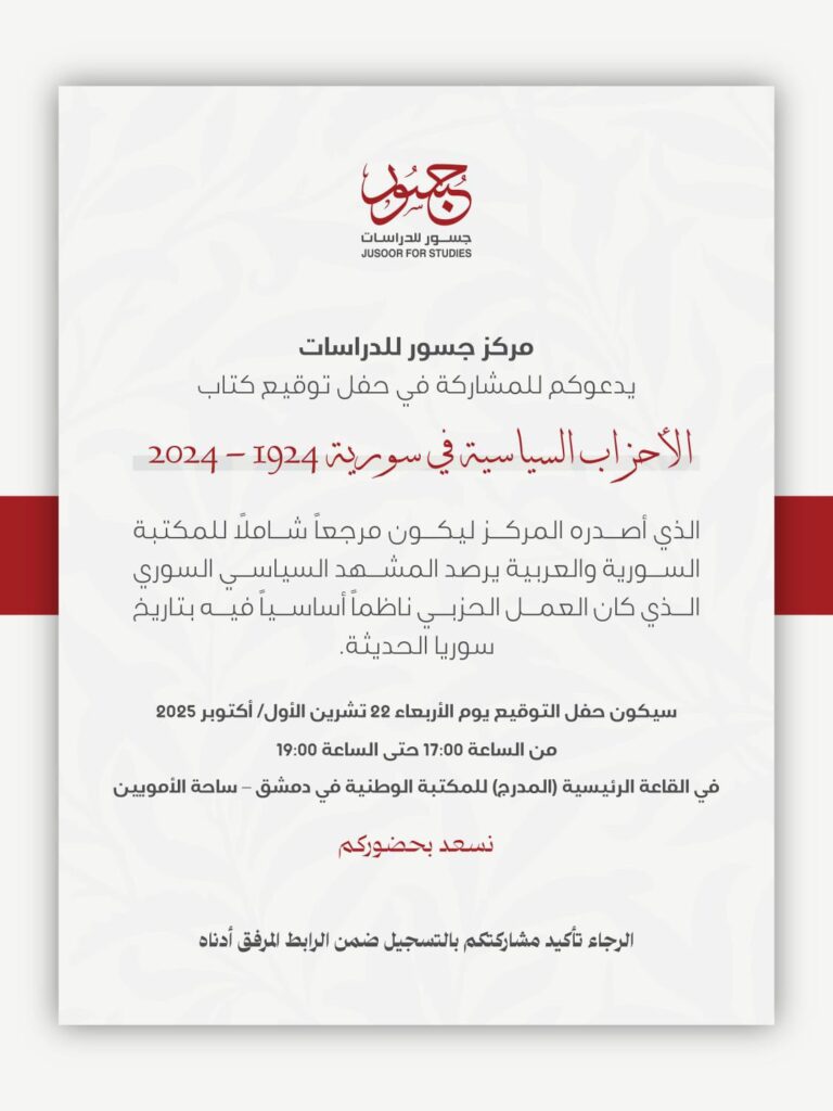 دعوة لـِ حفل توقيع كتاب الأحزاب السياسية في سورية 1924-2024