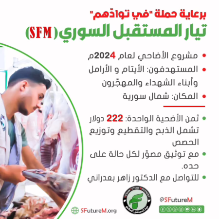 مشروع أضاحي عيد الأضحى لعام 2024م مع حملة 'في توادّهم' لدعم الأيتام والأرامل في شمال سورية.