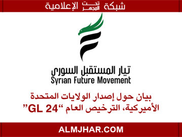 تيار المستقبل السوري يرحب بالقرار الأمريكي GL 24 ويدعو لتطوير العلاقات السورية الدولية.