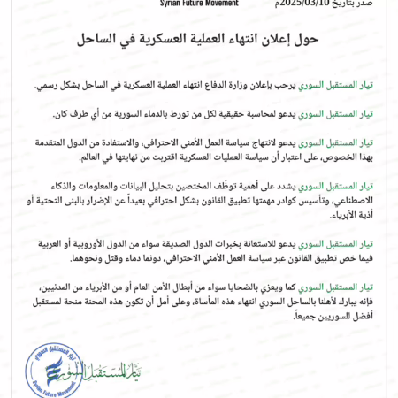 وجدت ما يهمك في تيار المستقبل السوري؟