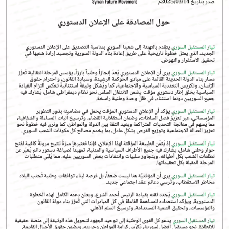 أهمية المصادقة على الإعلان الدستوري ودورها في بناء نظام ديمقراطي شامل لجميع السوريين.