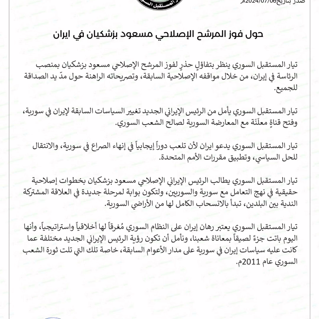 فوز المرشح الإصلاحي مسعود بزشكيان في إيران وتأثيره على العلاقات مع سورية.