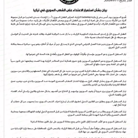 بيان بشأن استمرار الاعتداء على الشعب السوري في تركيا