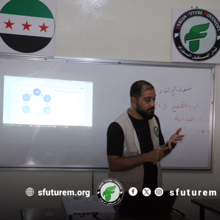 منح شهادات إتمام حضور تدريب: فن الإلقاء مع تيار المستقبل السوري لمهارات التواصل الفعالة.