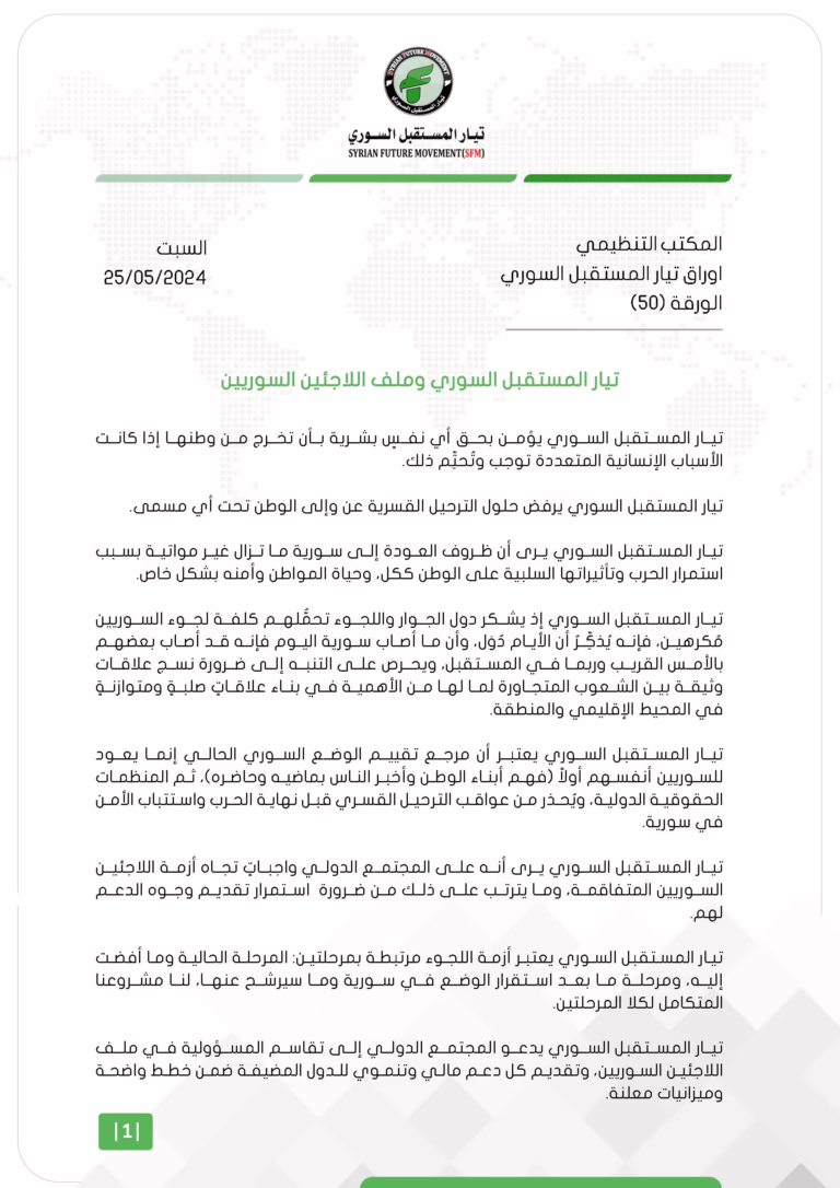 تيار المستقبل السوري يبرز أهمية دعم اللاجئين السوريين ويؤكد على ضرورة العلاقات القريبة بين الشعوب.