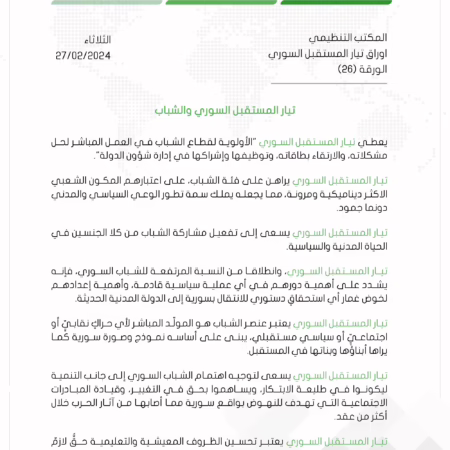 رؤية تيار المستقبل السوري إلى دور الشباب في تعزيز التغيير الاجتماعي والسياسي في سوريا.