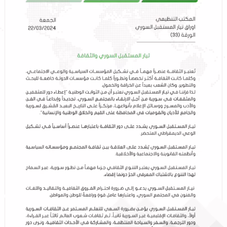 تيار المستقبل السوري يبرز أهمية الثقافة في تطوير المجتمع وتحقيق التنوع الثقافي المطلوب.