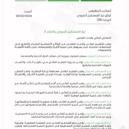 تيار المستقبل السوري يسلط الضوء على فوائد التعليم العالي ودوره في التنمية الاقتصادية والاجتماعية.