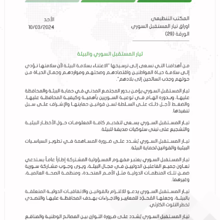 تيار المستقبل السوري والبيئة ينادي بالمسؤولية المشتركة لحماية البيئة والتخلص من التلوث الكارثي.