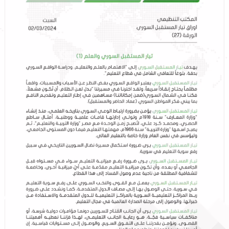 تيار المستقبل السوري يسعى لتعزيز التعليم ودعم المواطن السوري من خلال العلم والمعرفة.