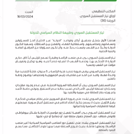 تيار المستقبل السوري: تعزيز الفصل بين السلطات واستقلالية القضاء لتحقيق دولة يخدم فيها الرئيس الشعب.