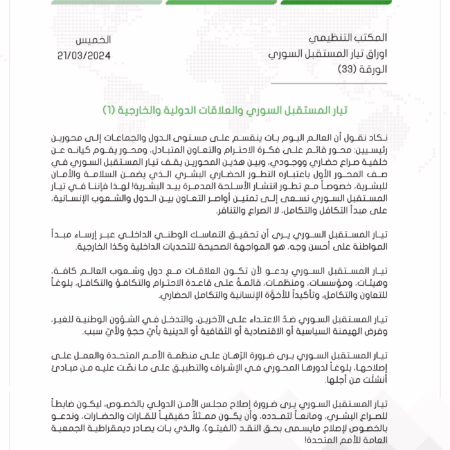 تيار المستقبل السوري والعلاقات الدولية والخارجية (١)