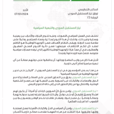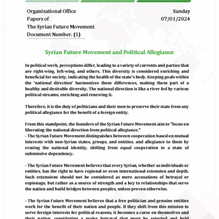 تيار المستقبل السوري والتبعية السياسية وضرورة الحفاظ على الهوية الوطنية في ظل التنوع السياسي.