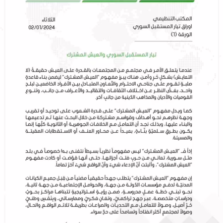 تيار المستقبل السوري والعيش المشترك وأهميته في بناء مجتمع يحترم التعددية الثقافية والدينية.