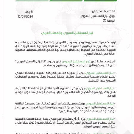 الرؤية السياسية لتيار المستقبل السوري بشأن تكامل سورية مع الفضاء العربي وتأثيره على الهوية.