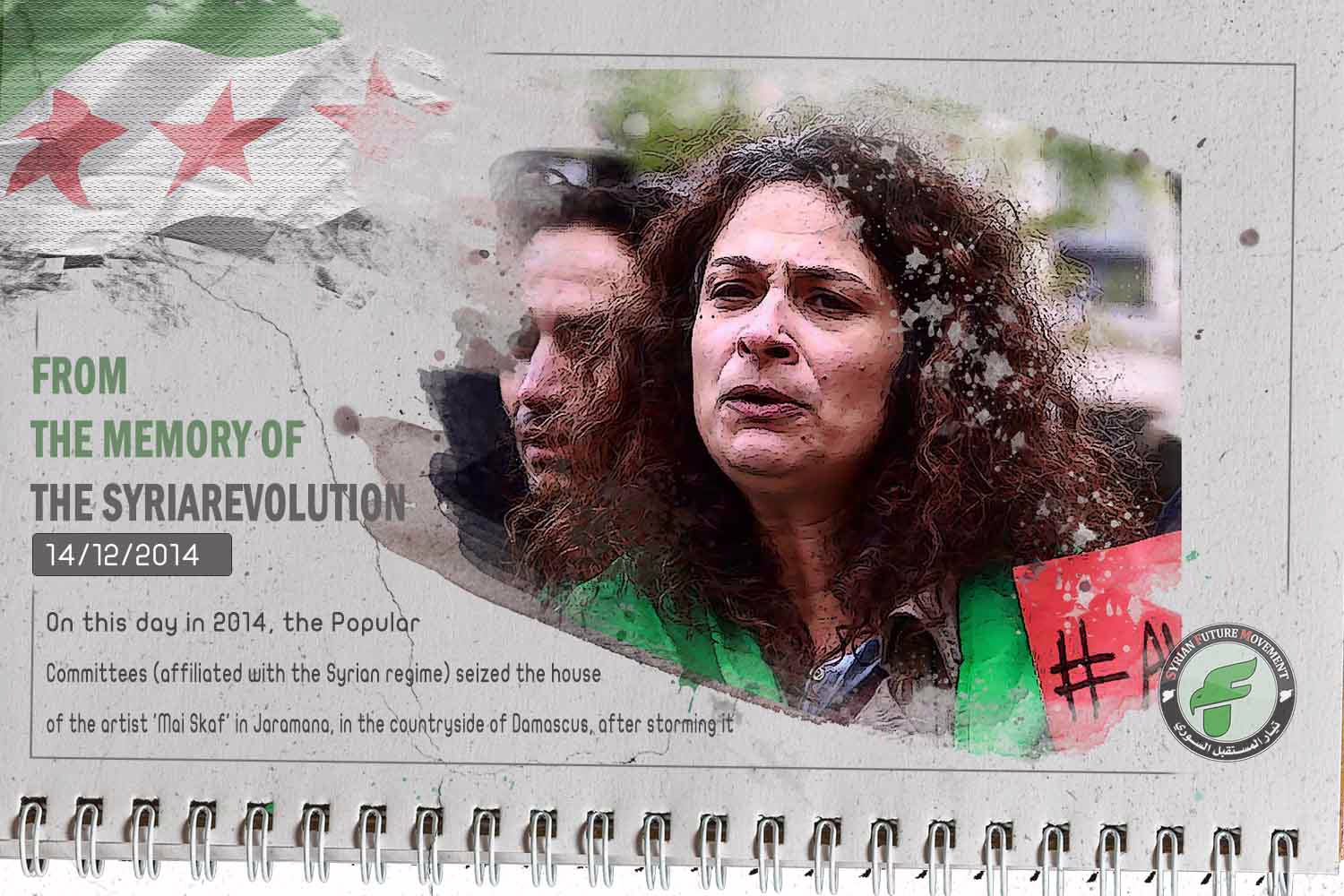 On this day in 2014, the Popular Committees (affiliated with the Syrian regime) seized the house of the artist ‘Mai Skaf’ in Jaramana, in the countryside of Damascus, after storming it.