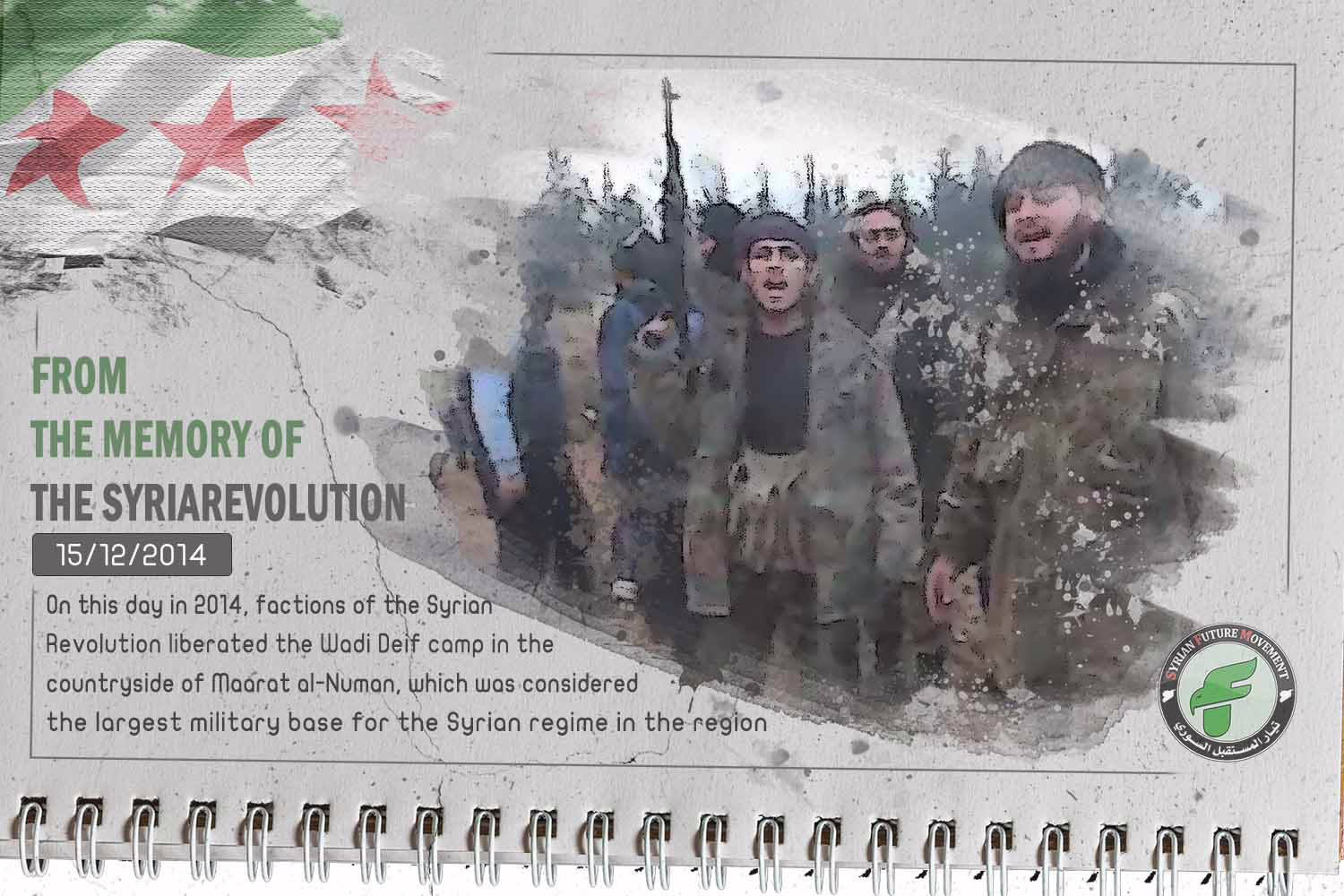 On this day in 2014, factions of the Syrian Revolution liberated the Wadi Deif camp in the countryside of Maarat al-Numan, which was considered the largest military base for the Syrian regime in the region.