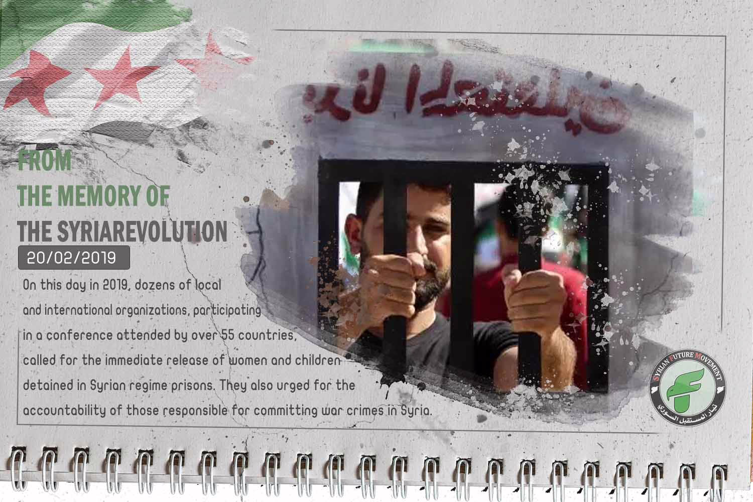 On this day in 2019, dozens of local and international organizations, participating in a conference attended by over 55 countries, called for the immediate release of women and children detained in Syrian regime prisons. They also urged for the accountability of those responsible for committing war crimes in Syria.