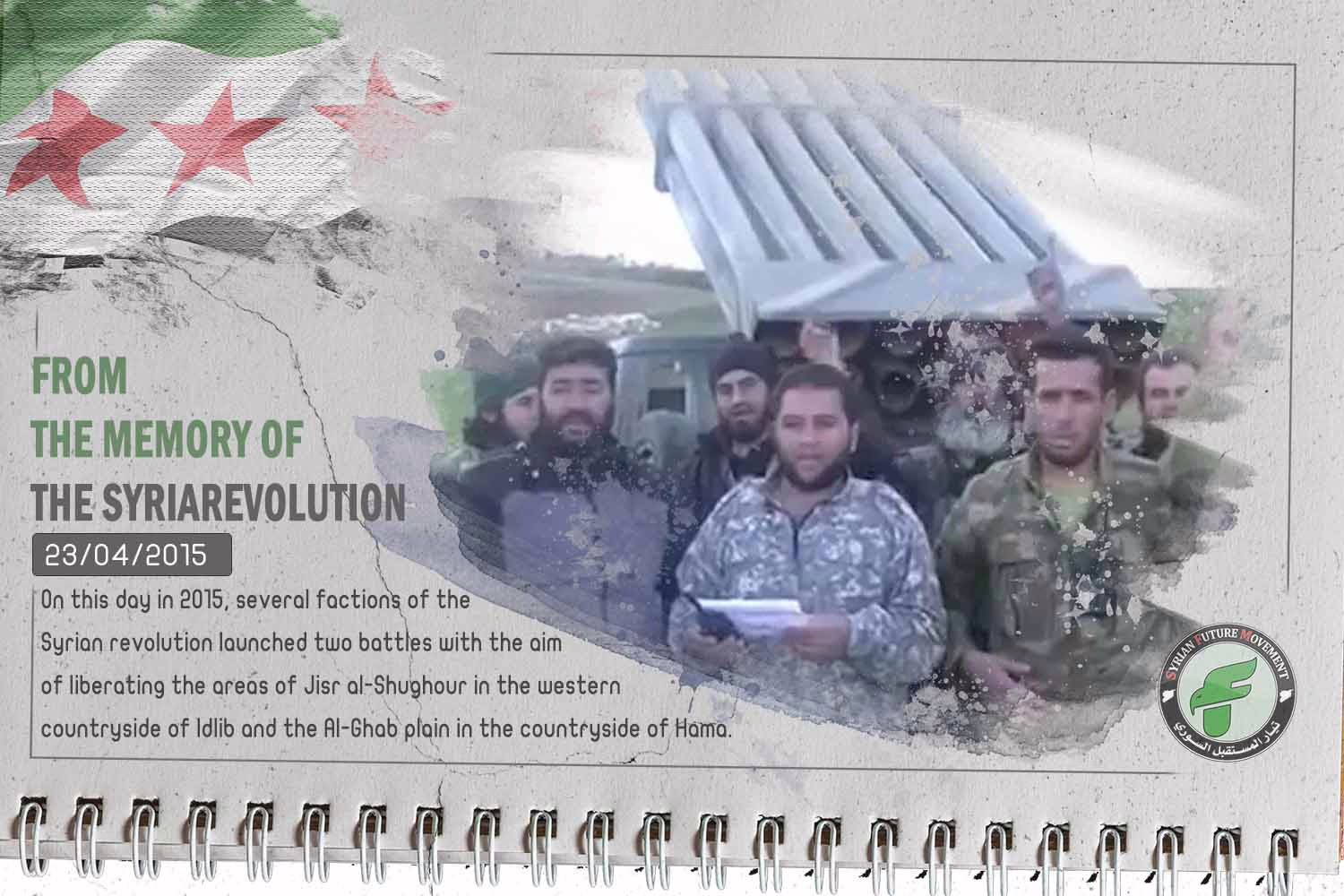 On this day in 2015, several factions of the Syrian revolution launched two battles with the aim of liberating the areas of Jisr al-Shughour in the western countryside of Idlib and the Al-Ghab plain in the countryside of Hama.