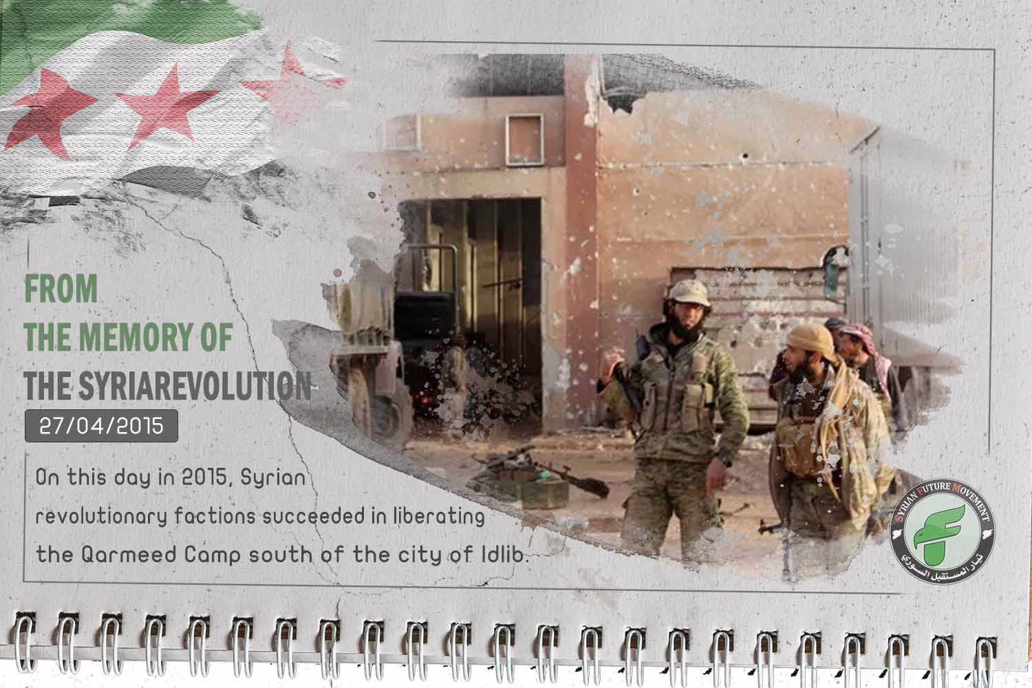 On this day in 2015, Syrian revolutionary factions succeeded in liberating the Qarmeed Camp south of the city of Idlib.