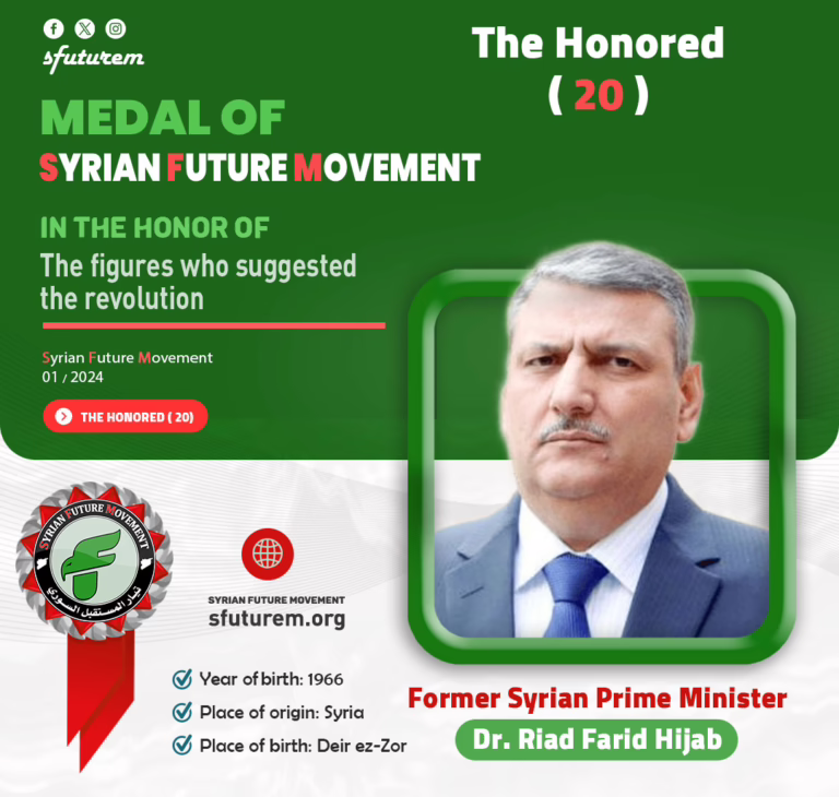 His Excellency Number (20) Syrian Prime Minister Dr. Riad Farid Hijab