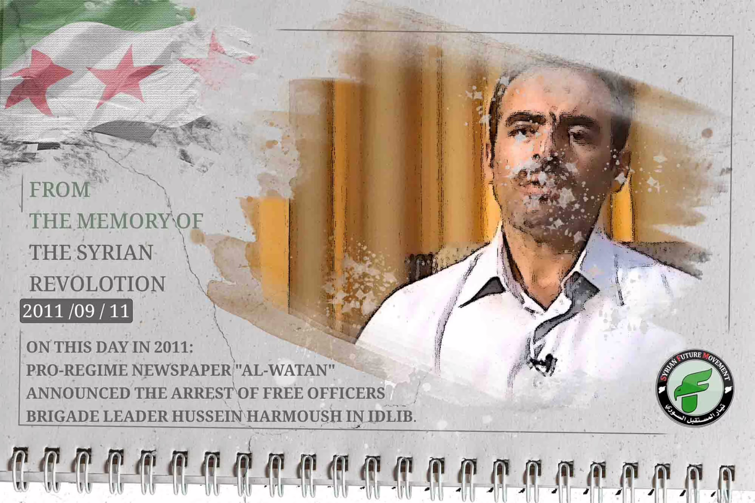 On this day in 2011: the pro-regime newspaper Al-Watan, citing “local sources in Idlib province,” announced the arrest of Lieutenant Colonel Hussein Harmoush, the founder and leader of the “Free Officers Brigade.” The newspaper reported that “Harmoush had been moving between Syria and Turkey for some time and was arrested at the end of last week in his village, Iblin, along with several individuals wanted by justice.” It added that “security forces carried out a special operation in the village and captured Harmoush alive, in possession of medium and light weapons, communication devices, and computers.”