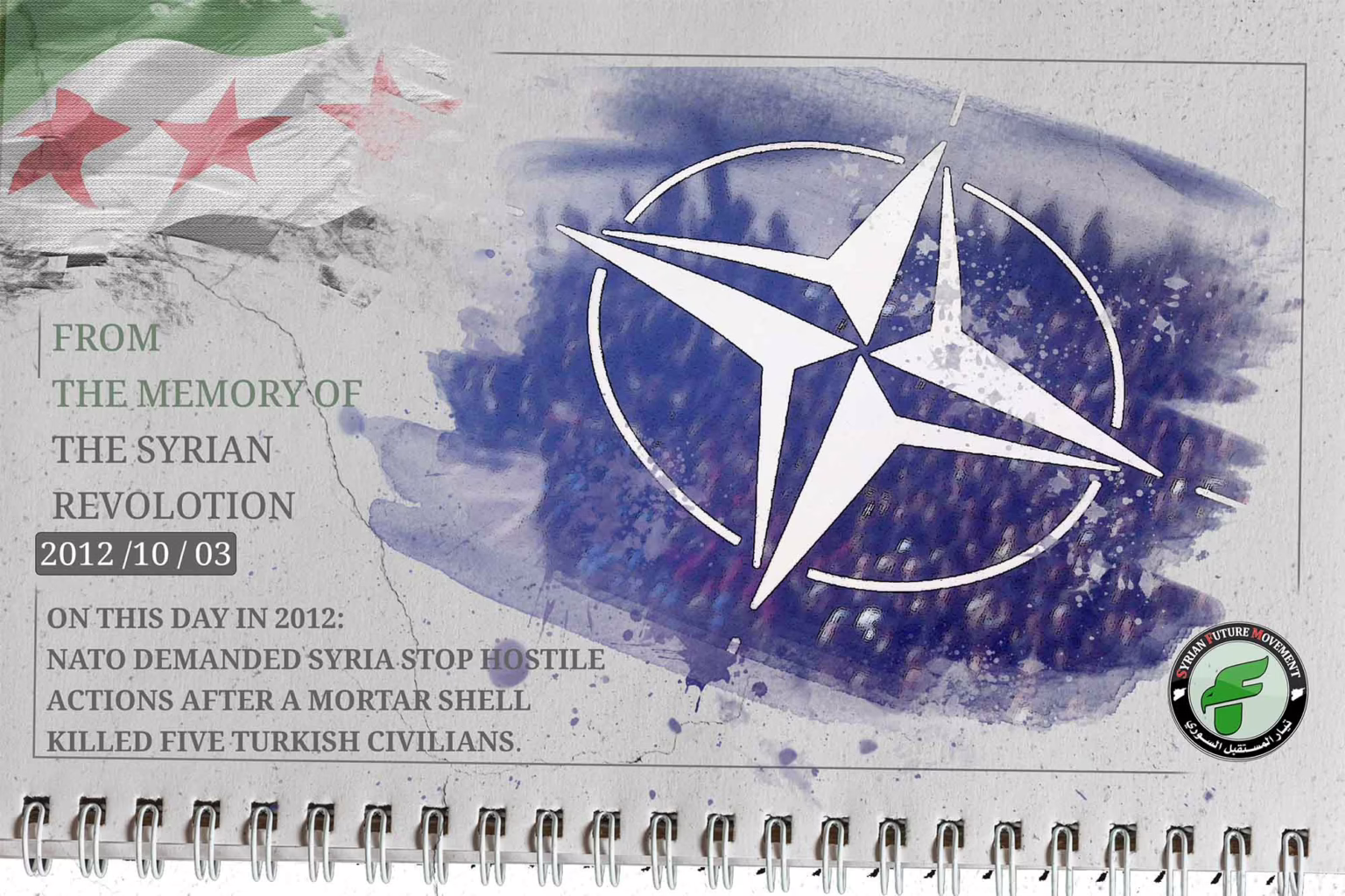 On this day in 2012: NATO demanded the immediate cessation of “hostile actions” by the Syrian regime against Turkey after five civilians were killed by a “mortar shell” fired from Syrian territory.