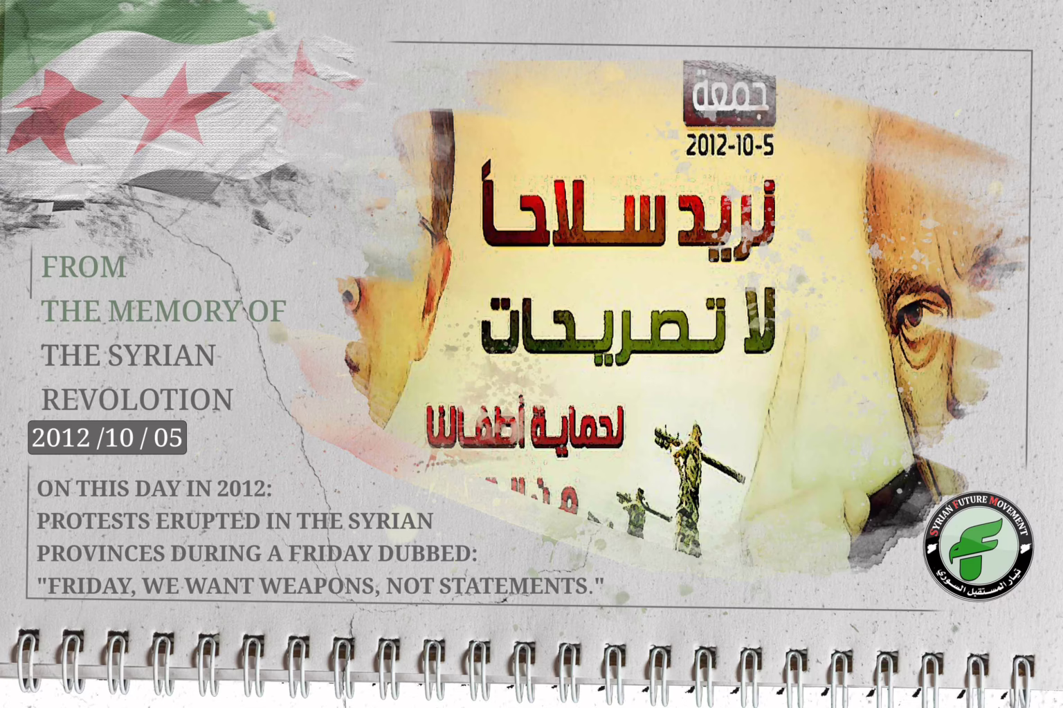 On this day in 2012: Protests erupted in the Syrian provinces during a Friday dubbed: “Friday, We Want Weapons, Not Statements.”