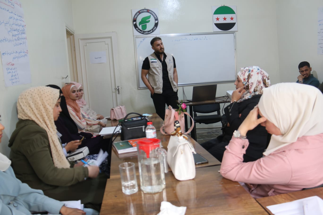 The Syrian Future Movement held a new training titled “Human Resources Management” on 2025-04-23 in the city of A‘azaz – across from Al-Safa Bakery.